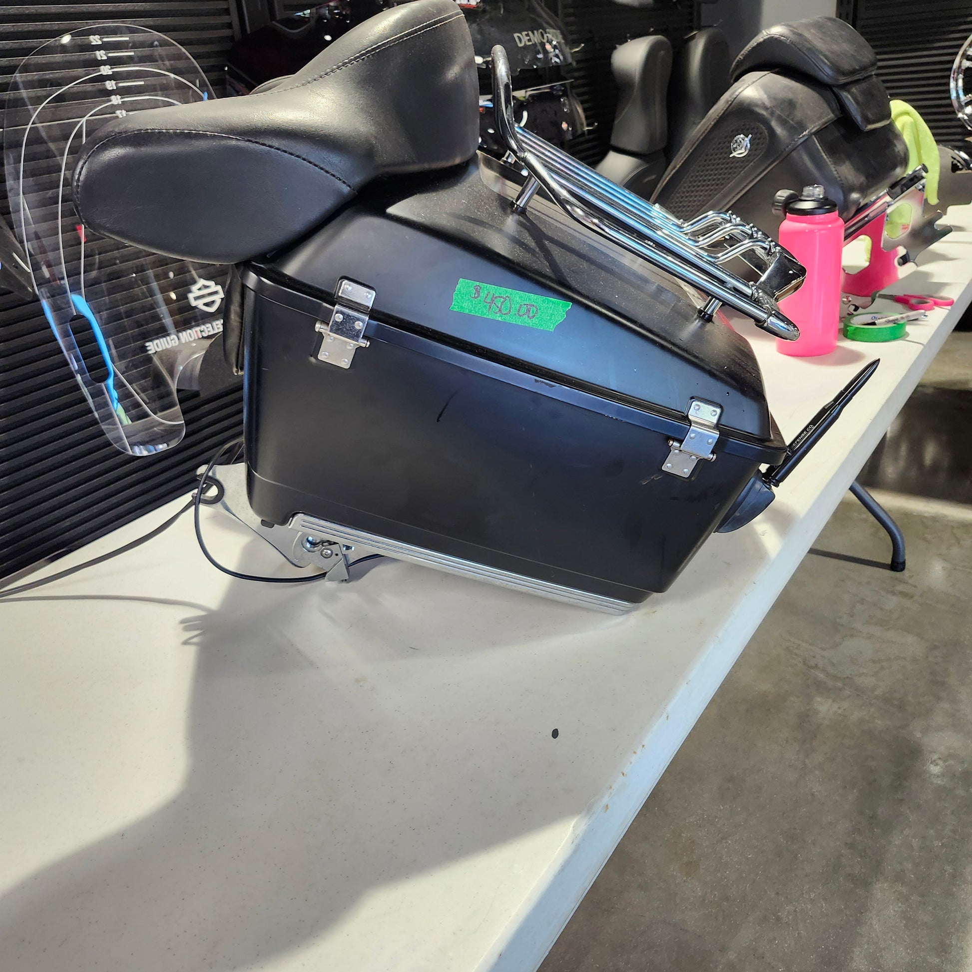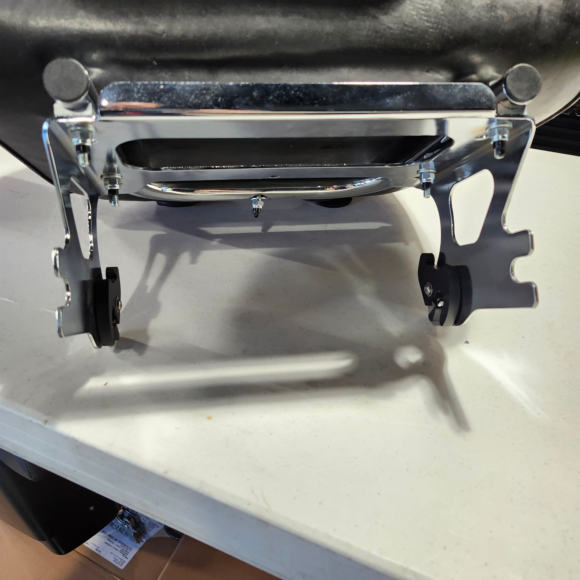 Comes with a Chrome air wing luggage rack with red lens light.